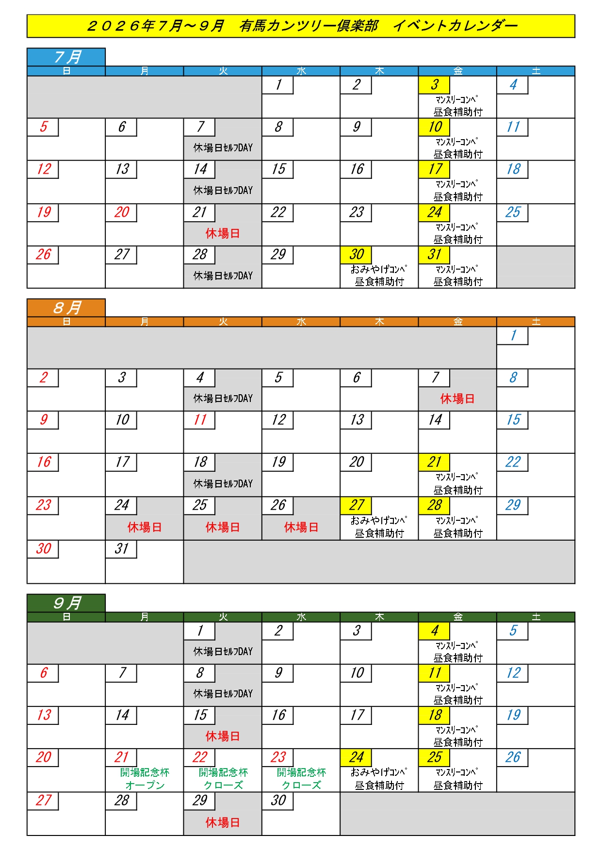 2026年4月~9月イベントカレンダー