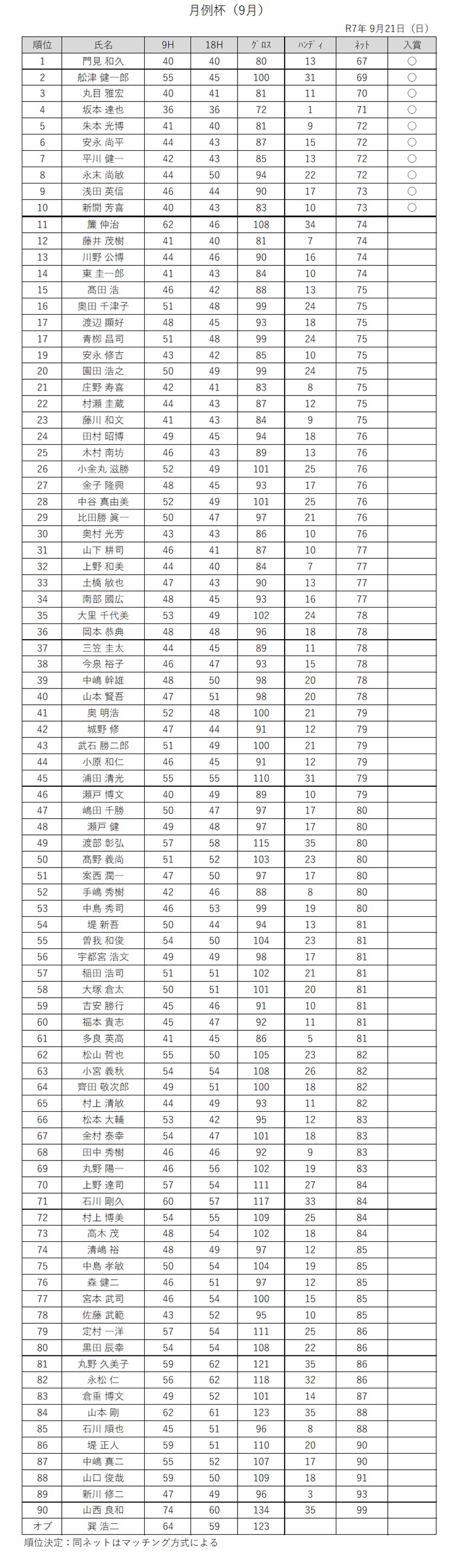 2025年9月21日(日) - 麻生飯塚ゴルフ倶楽部 メンバー様からのお知らせ