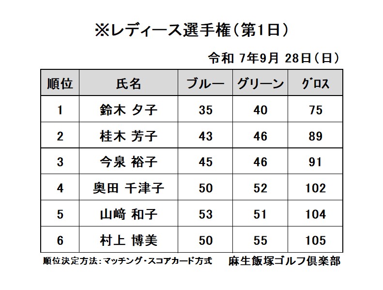 9月28日(日)※レディース選手権(第1日)成績表