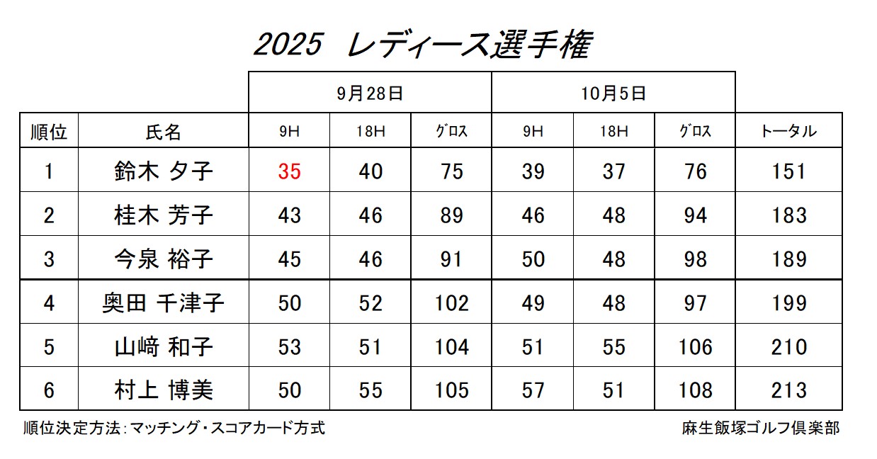 2025年10月5日(日) - 麻生飯塚ゴルフ倶楽部 メンバー様からのお知らせ