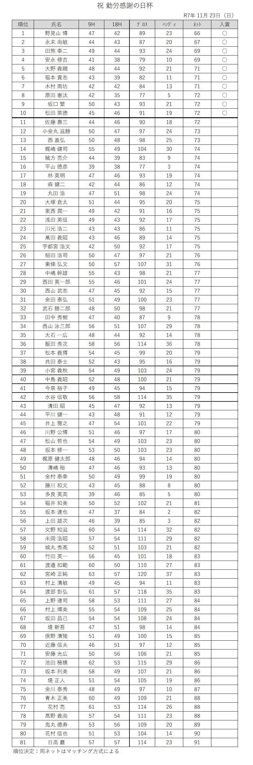2025年11月23日(日) - 麻生飯塚ゴルフ倶楽部 メンバー様からのお知らせ