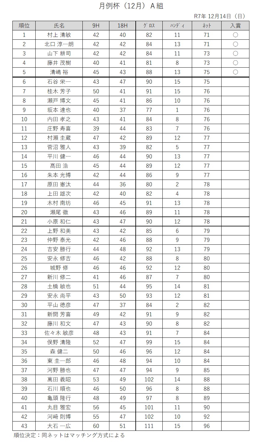 2025年12月14日(日) - 麻生飯塚ゴルフ倶楽部 メンバー様からのお知らせ