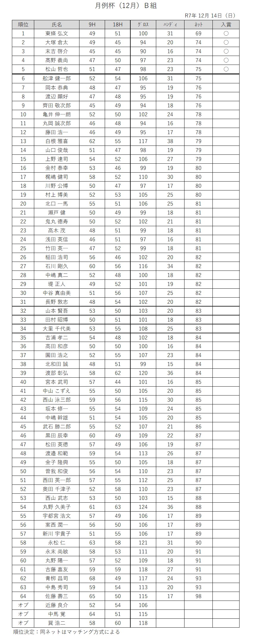 2025年12月14日(日) - 麻生飯塚ゴルフ倶楽部 メンバー様からのお知らせ