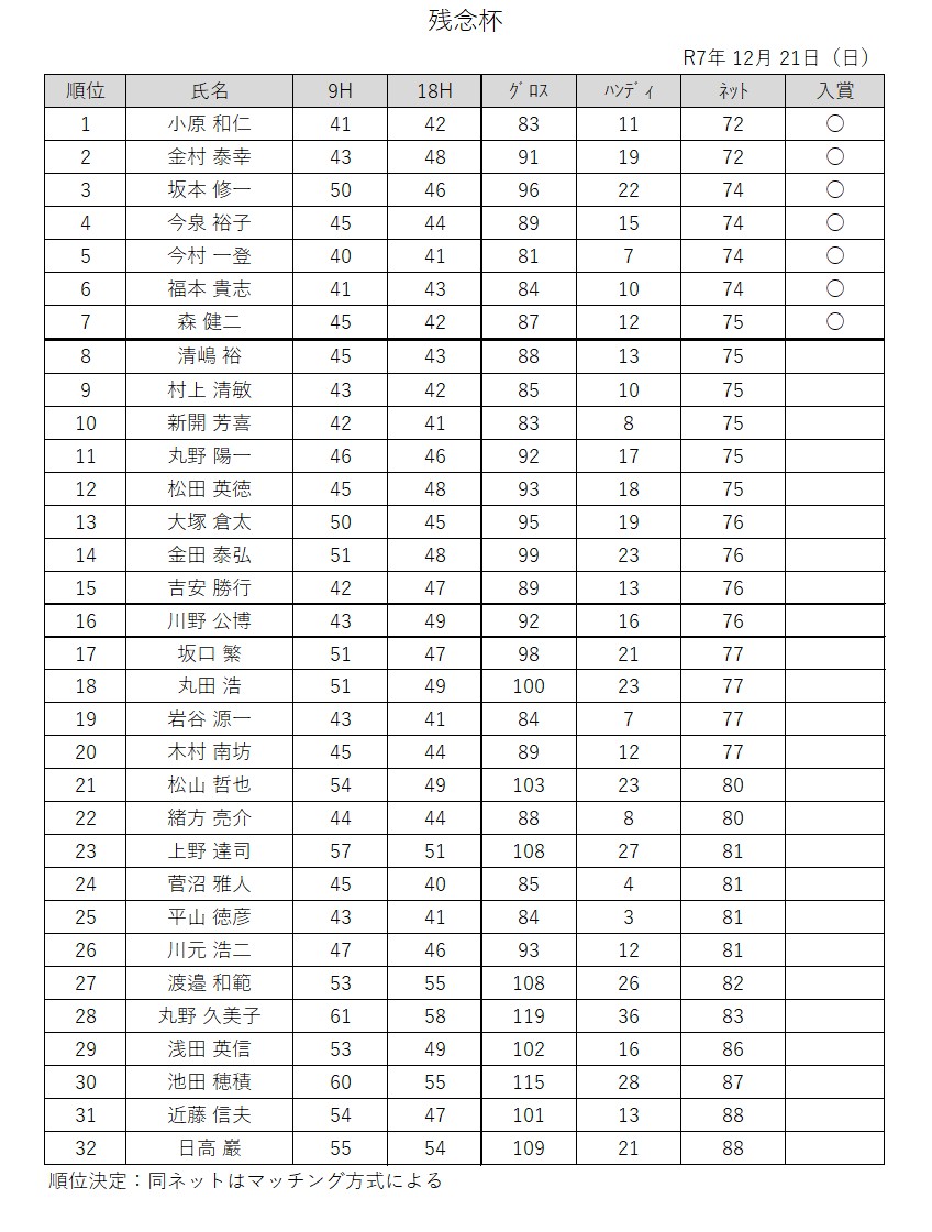 2025年12月21日(日) - 麻生飯塚ゴルフ倶楽部 メンバー様からのお知らせ
