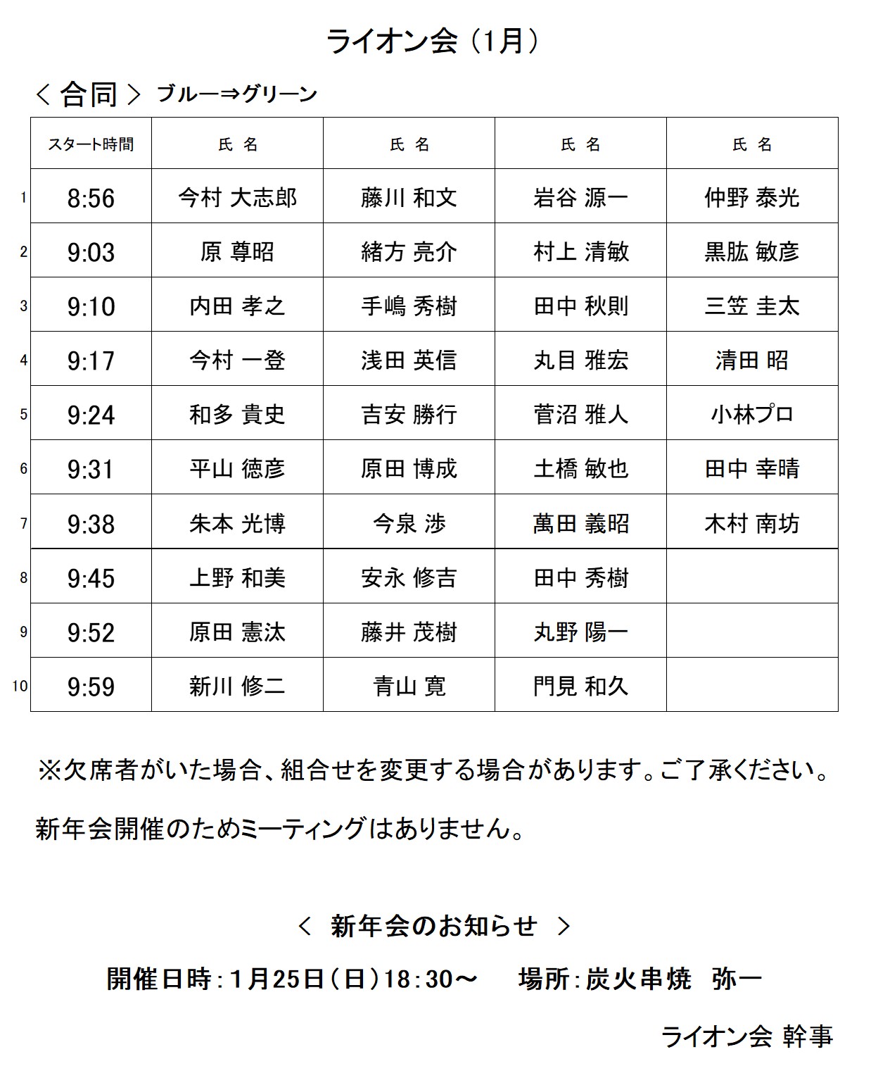 2026年1月17日(土) - 麻生飯塚ゴルフ倶楽部 メンバー様からのお知らせ