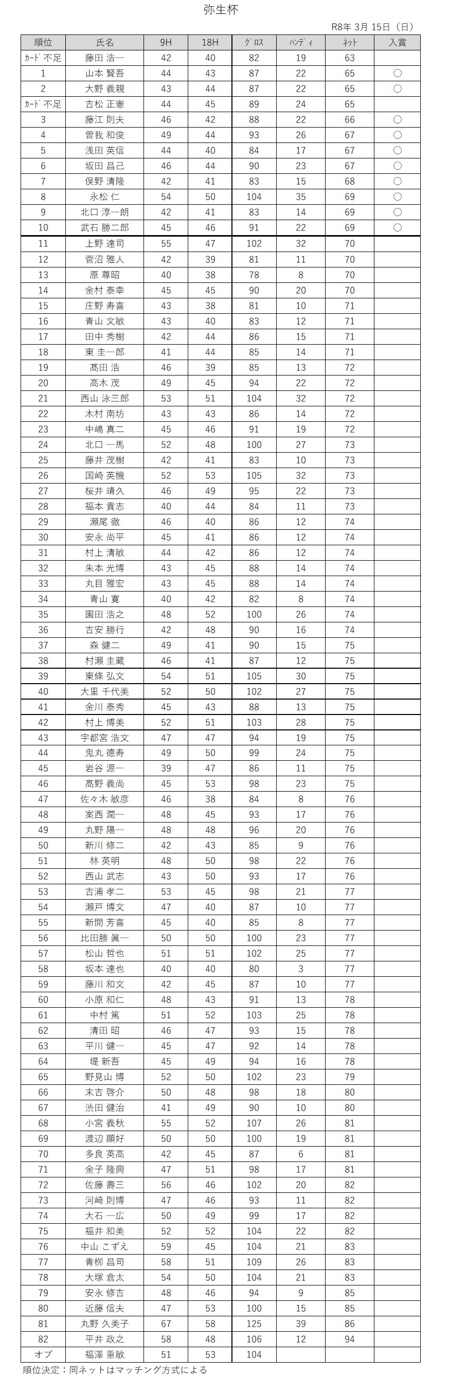 3月15日(日)弥生杯