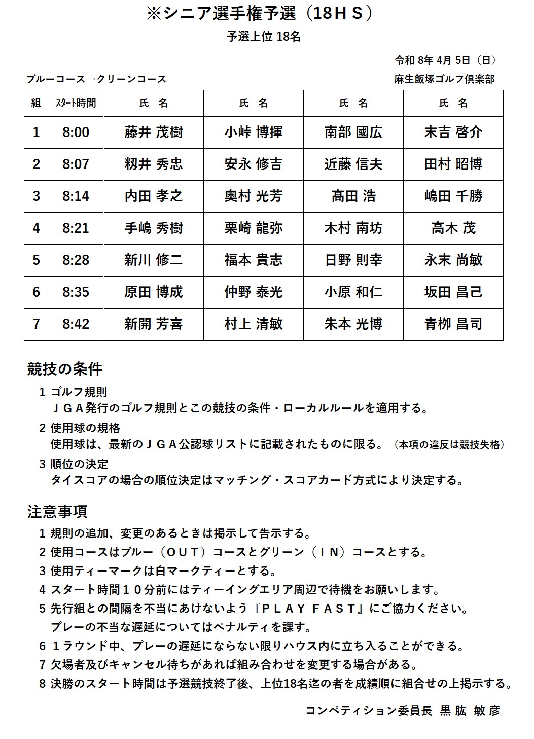 2026年3月25日(水) - 麻生飯塚ゴルフ倶楽部 メンバー様からのお知らせ