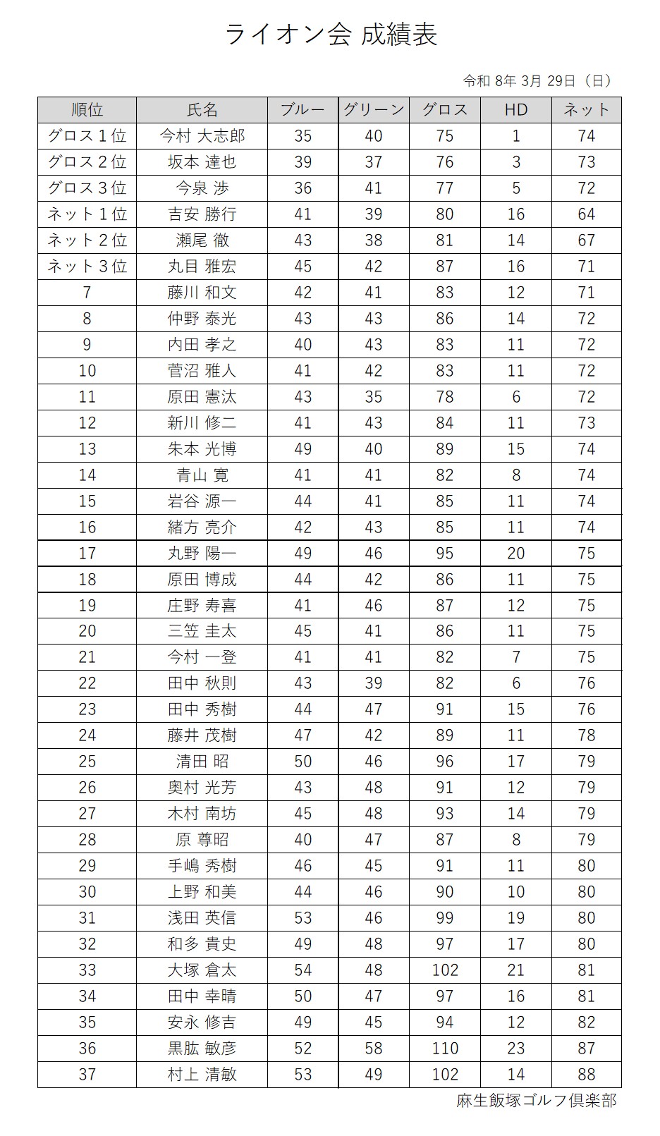 2026年3月29日(日) - 麻生飯塚ゴルフ倶楽部 メンバー様からのお知らせ