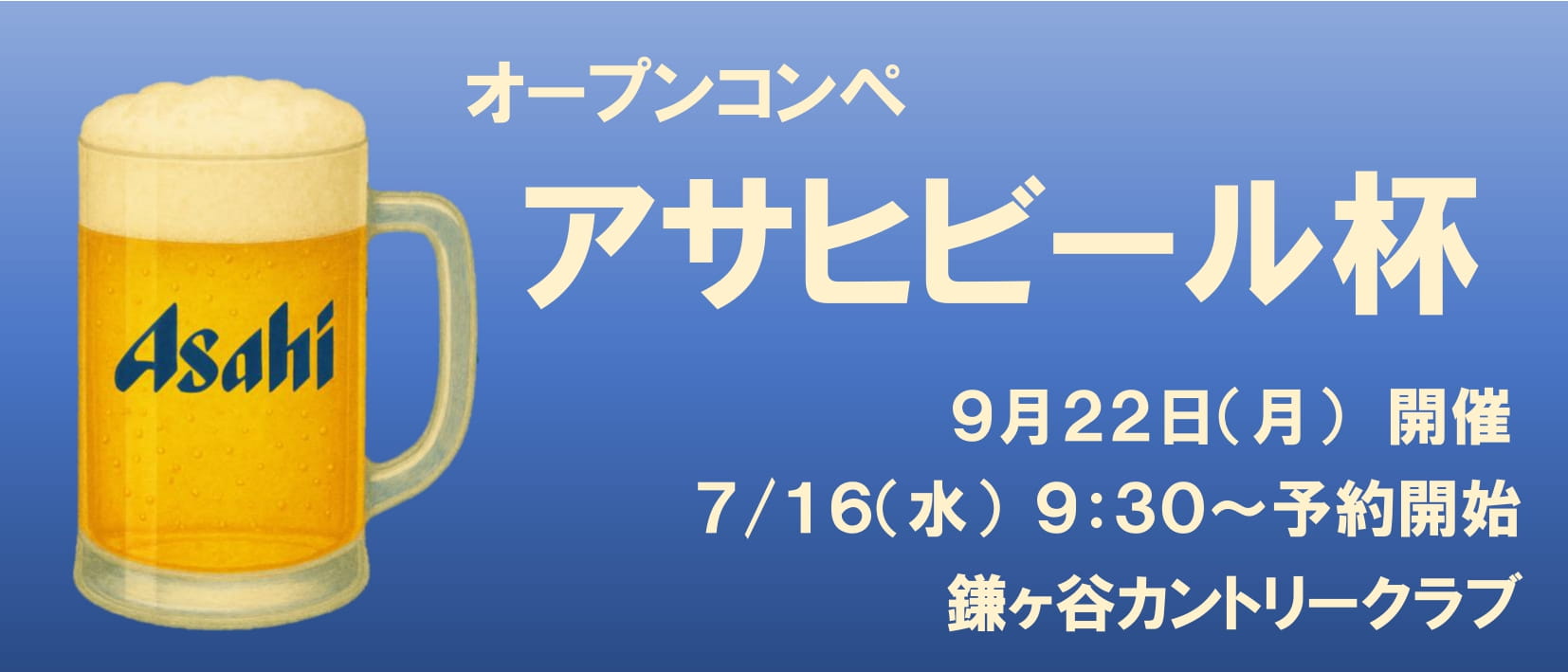 9月22日(月)開催のオープンコンペ『アサヒビール杯』のご予約開始日についてのお知らせいたします。